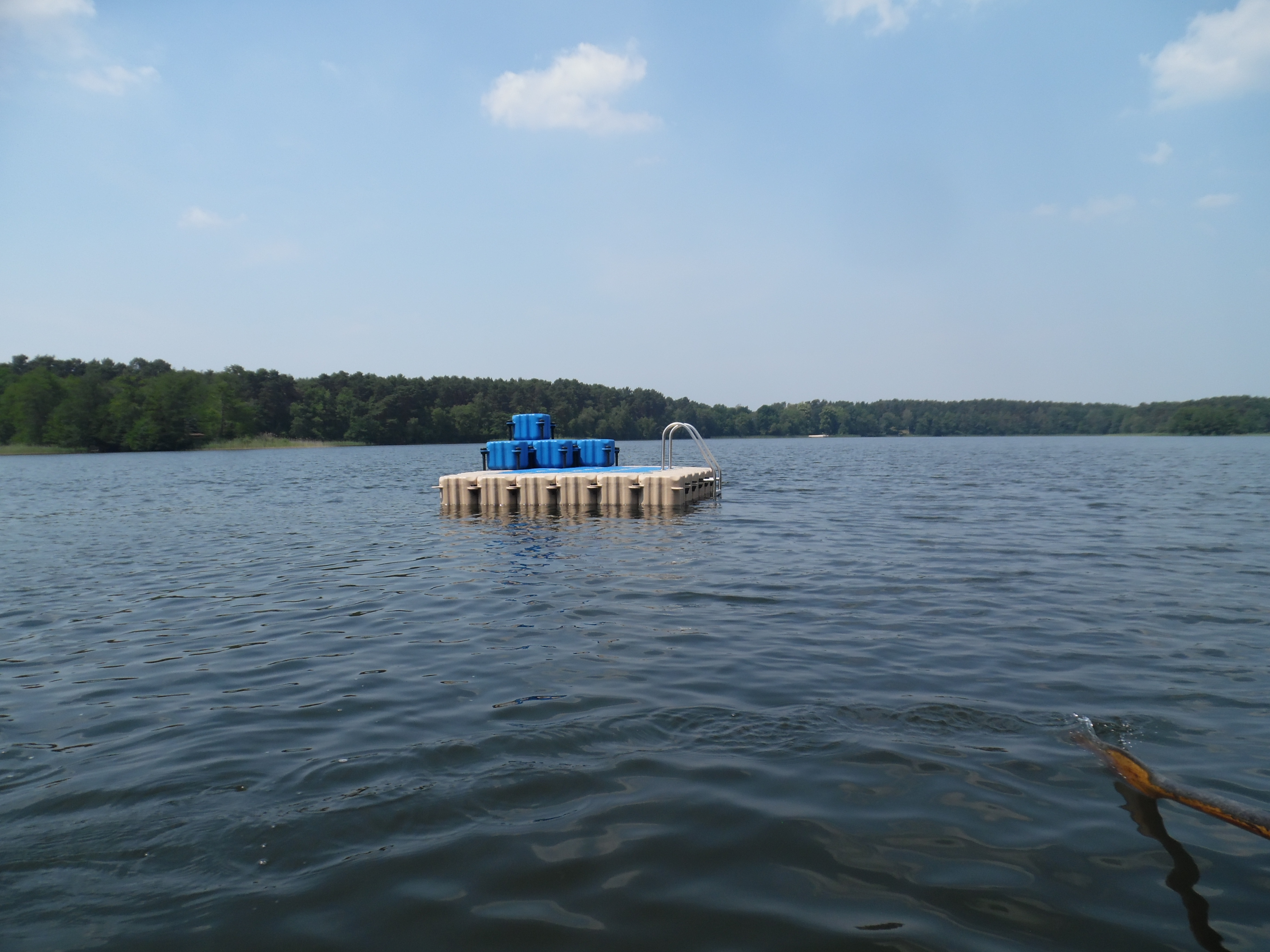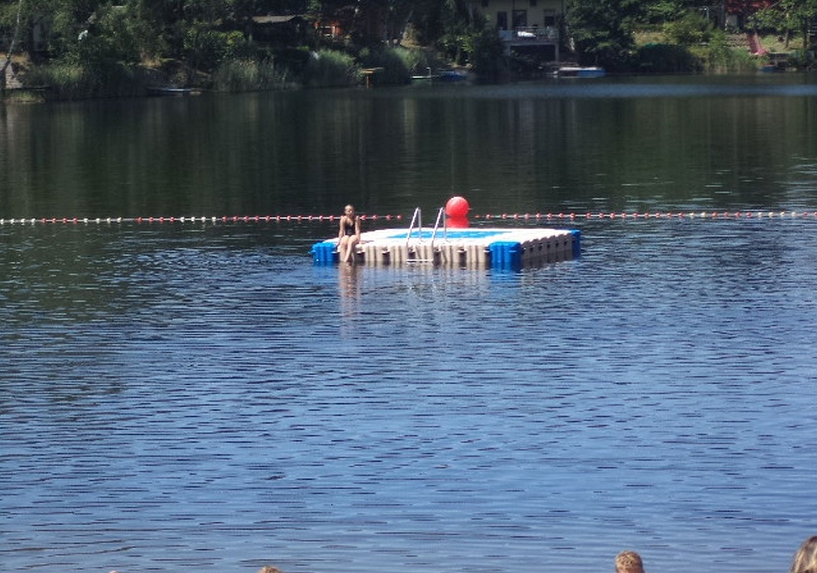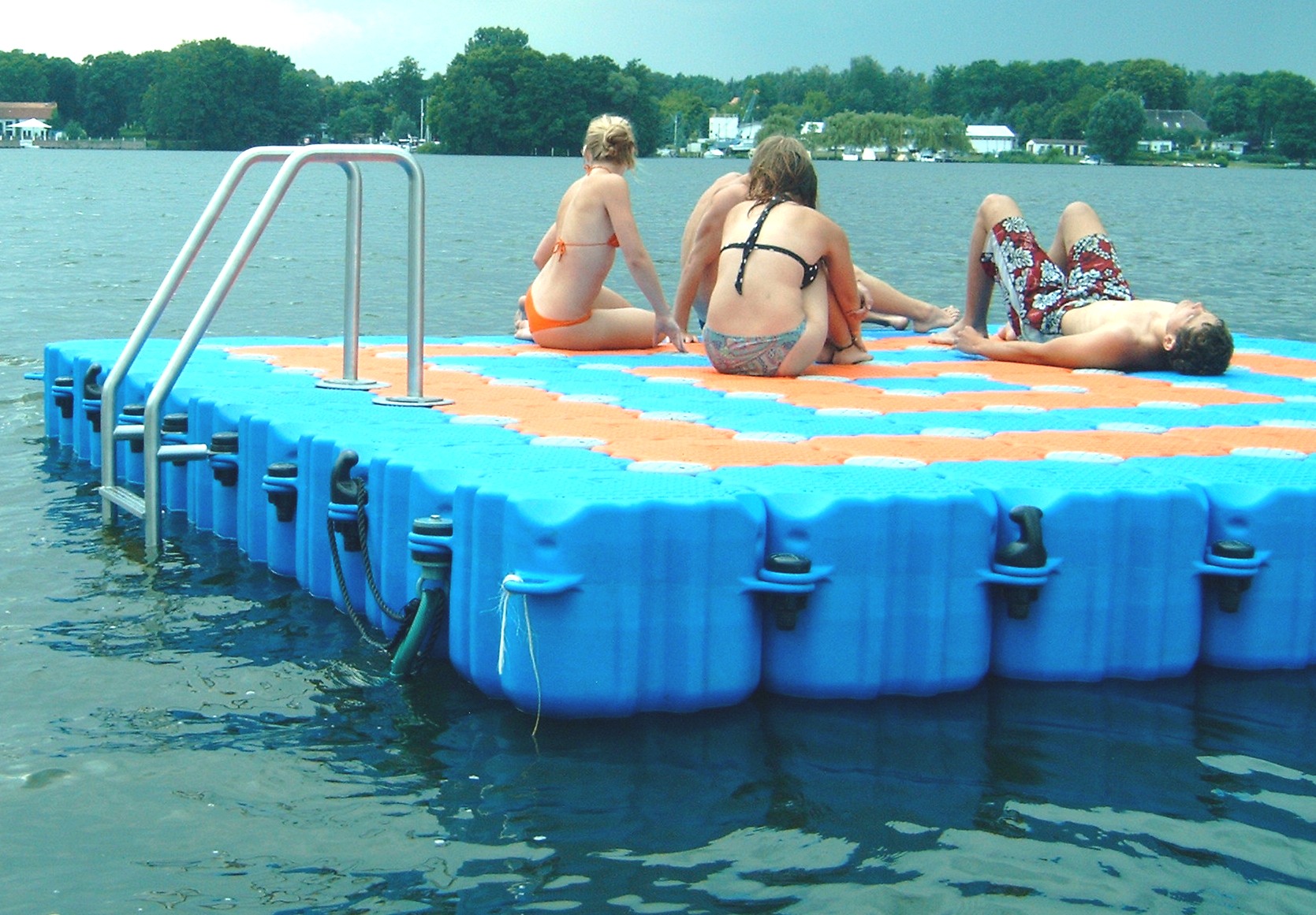 Schwimmende Pontonschwimmkörper als Badeinsel aus Kunststoffpontons