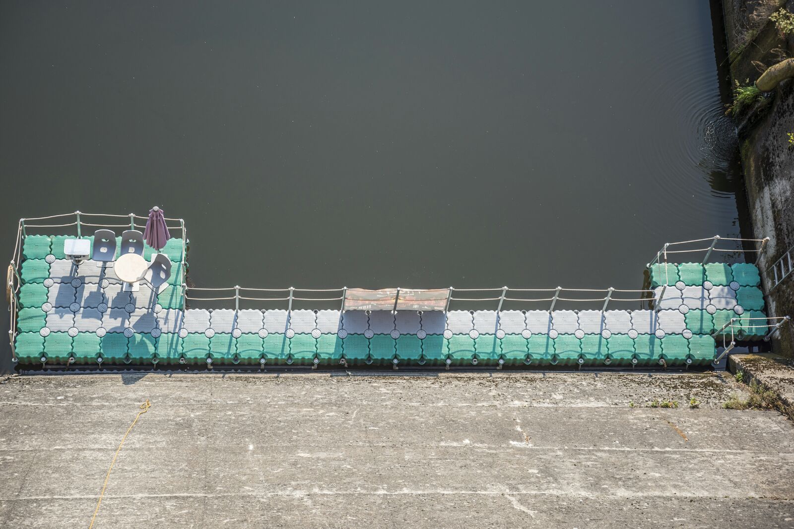 schwimmende Ankunftsplattform mit Stuhl und Tisch - www.harzdrenalin.de